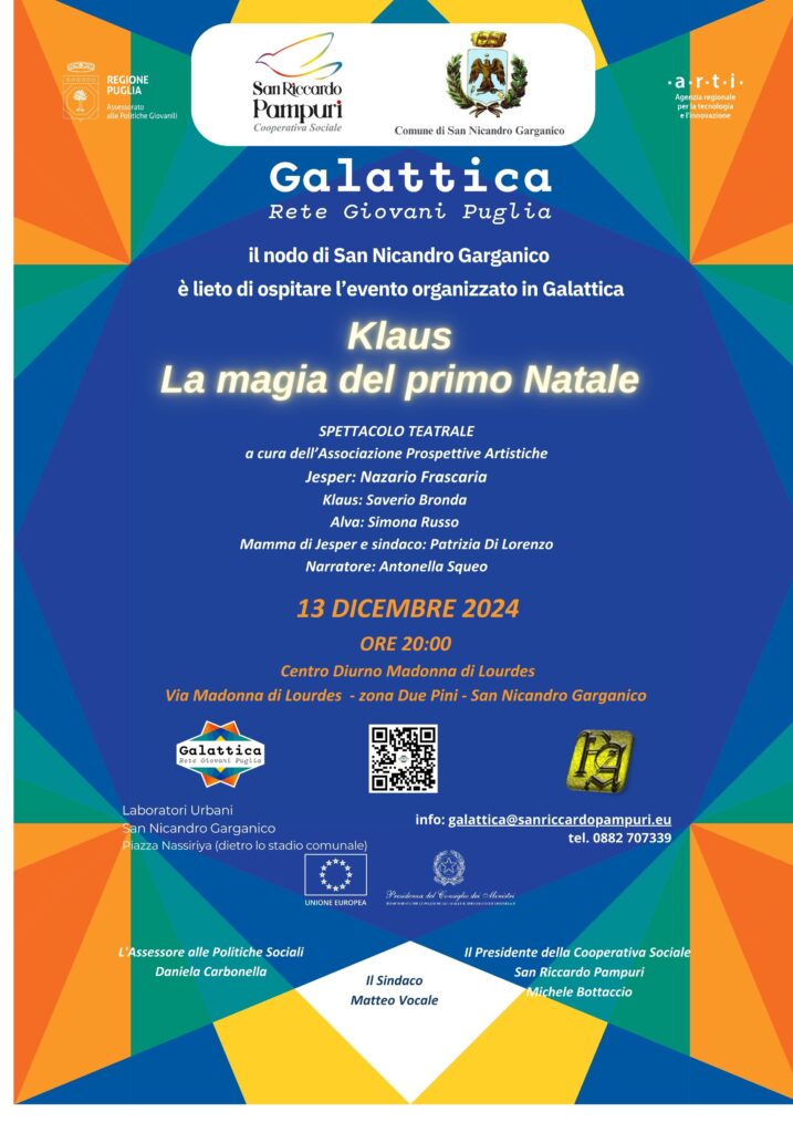 “Klaus – La magia del primo Natale” Il secondo evento ospitato nel Piano Locale degli interventi di Galattica ha visto la realizzazione di uno spettacolo teatrale ad opera dell’associazione Prospettive Artistiche. Realizzato durante le festività natalizie in collaborazione con il Centro Diurno Madonna di Lourdes di San Nicandro Garganico. Da anni i ragazzi di questa […]